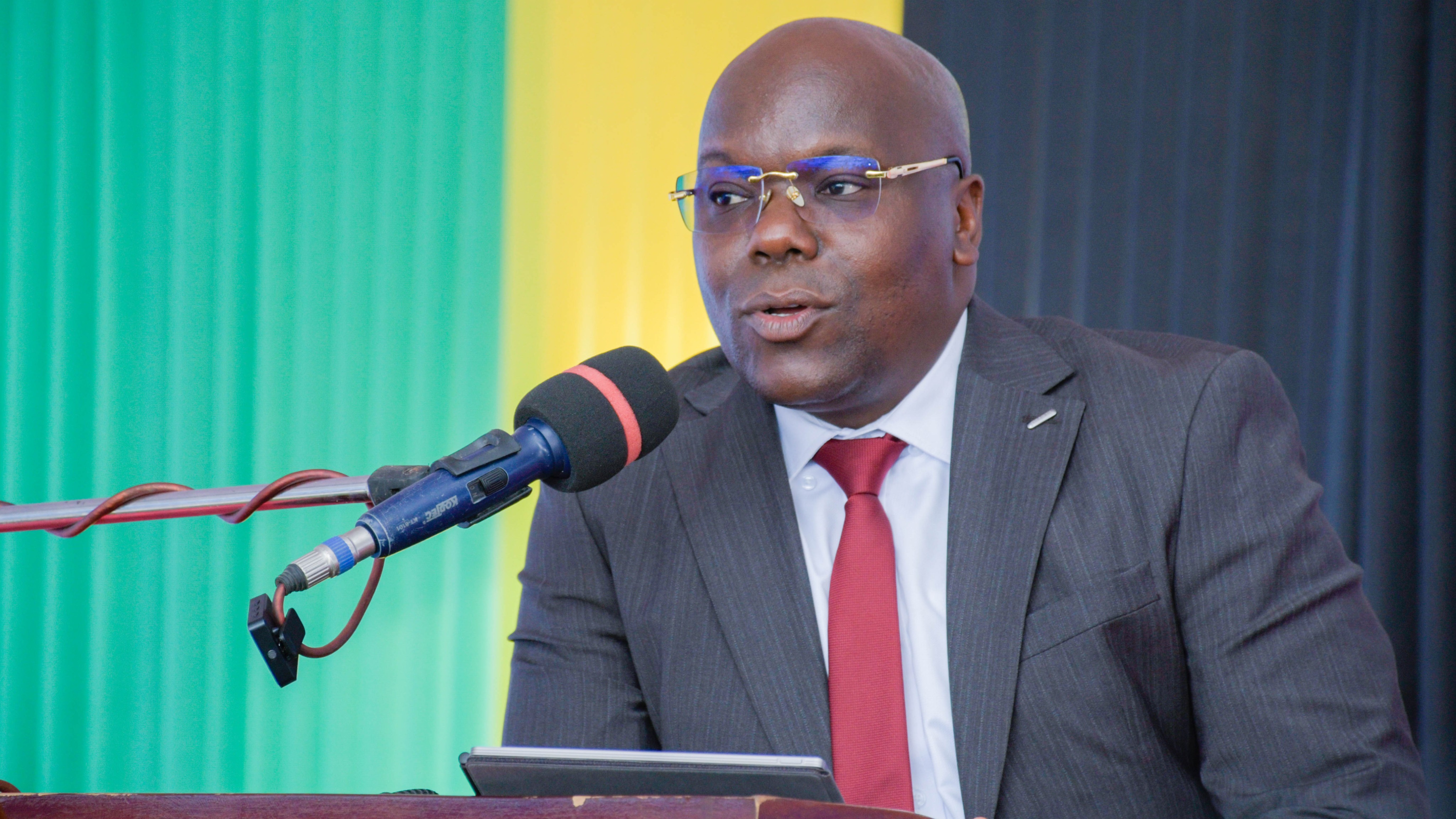 Katibu Mtendaji wa Tume ya Haki za Binadamu na Utawala Bora, Bw. Patience Ntwina akitoa neno la shukrani mara baada ya kukabidhiwa vitendea kazi kutoka Wizara ya Katiba na Sheria kwenye hafla iliyofan...
