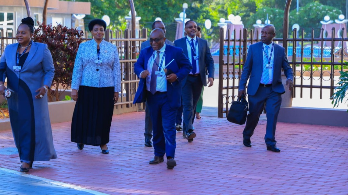 Katibu Mtendaji wa Tume ya Haki za Binadamu na Utawala Bora (THBUB), Bw. Patience Ntwina (Kulia) pamoja na baadhi ya Majaji, Wakurugenzi na Wakuu wa taasisi zilizo chini ya Wizara ya Katiba na Sheria...