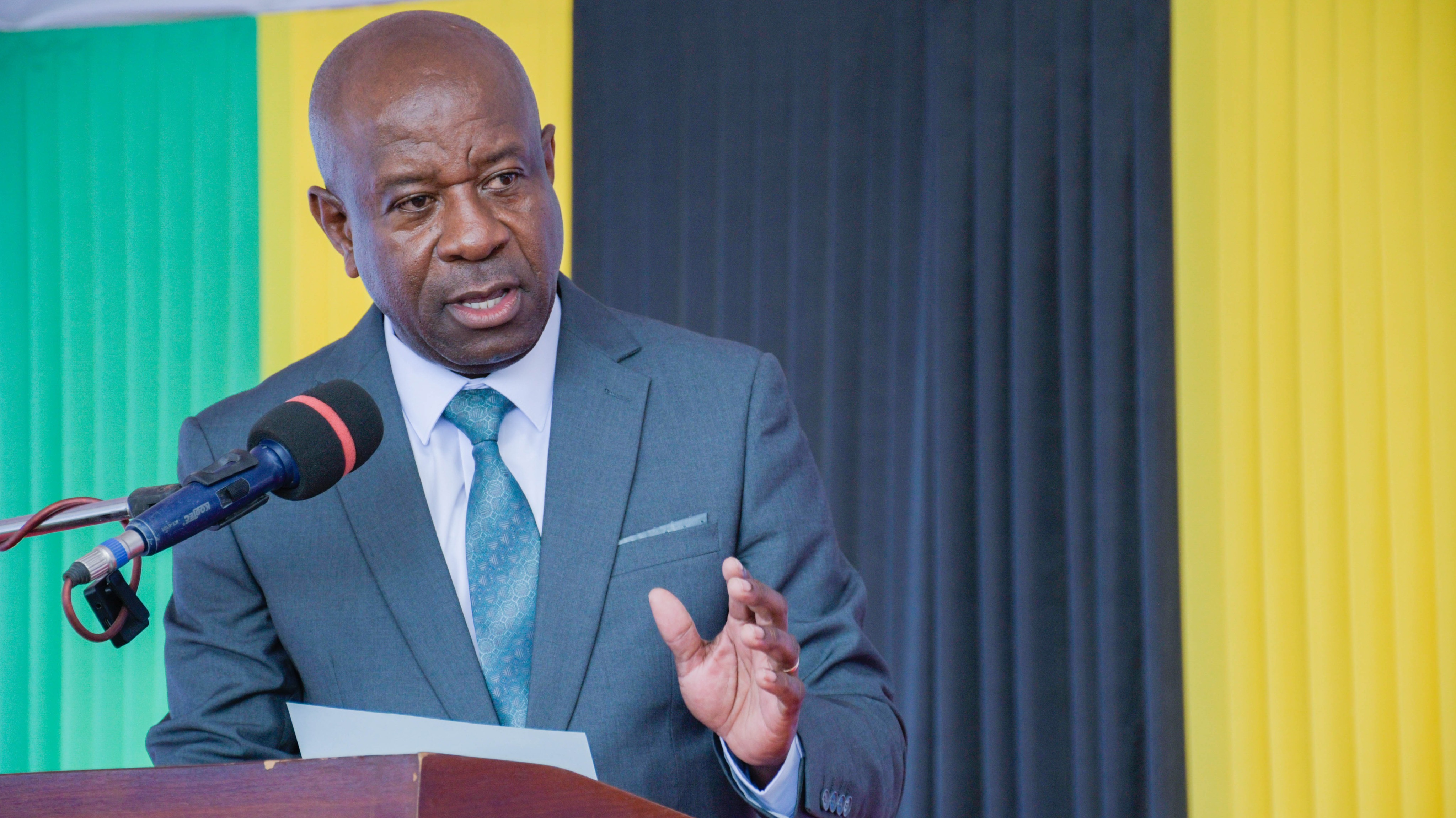 Waziri wa Katiba na Sheria Mhe. Dkt. Juma Homera (Mb) akizungumza wakati wa hafla ya kukabidhi vitendea kazi kwa Mahakama ya Tanzania na Tume ya Haki za Binadamu na Utawala Bora iliyofanyika Mtumba, J...